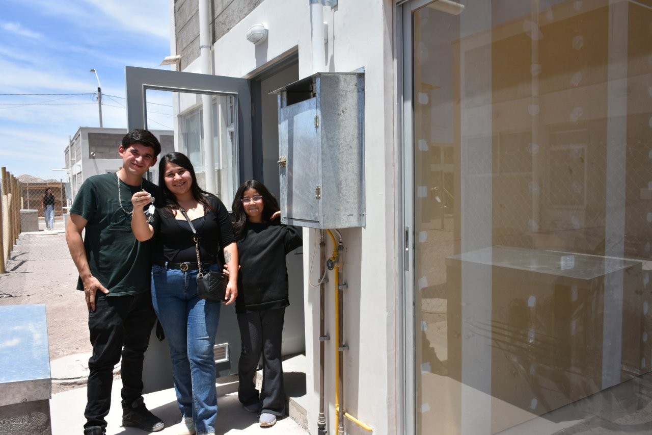 Pozo Almonte, 22 de diciembre de 2025. En una emotiva ceremonia, este lunes se realizó la entrega oficial de las 156 viviendas que conforman el conjunto habitacional “Fuerza y Esperanza”, ubicado en la localidad de Pozo Almonte. El proyecto, desarrollado por el Fondo Solidario de Elección de Vivienda, con aporte para obras de urbanización de parte del Gobierno Regional de Tarapacá, forma parte del Plan de Emergencia Habitacional impulsado por el actual gobierno, que busca dar respuesta al déficit habitacional y garantizar el derecho a una vivienda digna para las familias más vulnerables del país.