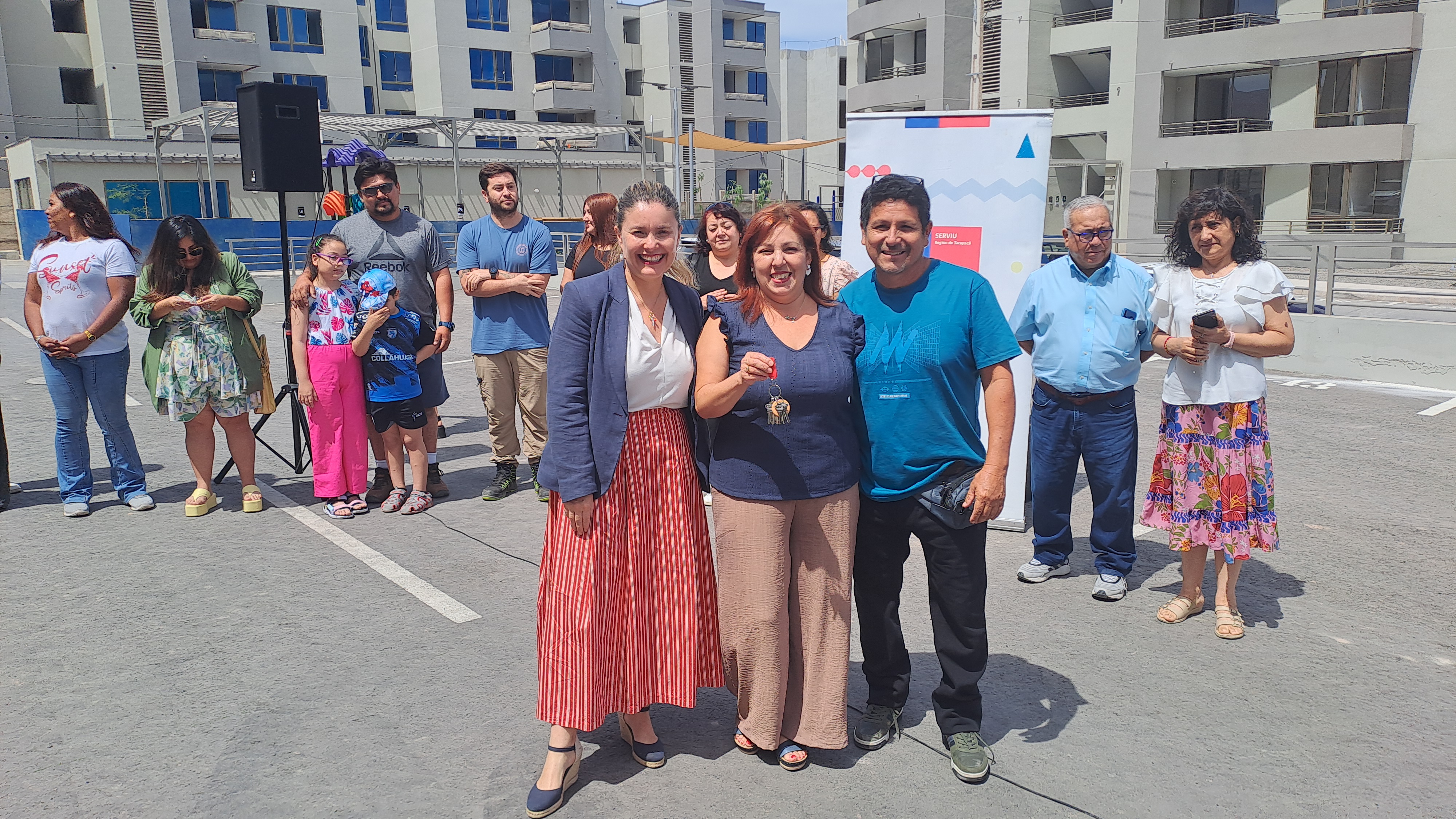También se realizó la entrega de llaves a 30 familias beneficiarias de los programas DS49 y DS1 Tramo I del Proyecto de Integración Social y Territorial “Arunta II” (Alto Pirámide), desarrollado en la comuna de Alto Hospicio por Besalco Desarrollos Inmobiliarios S.A., como parte del Plan de Emergencia Habitacional impulsado por el Gobierno del Presidente Gabriel Boric.
